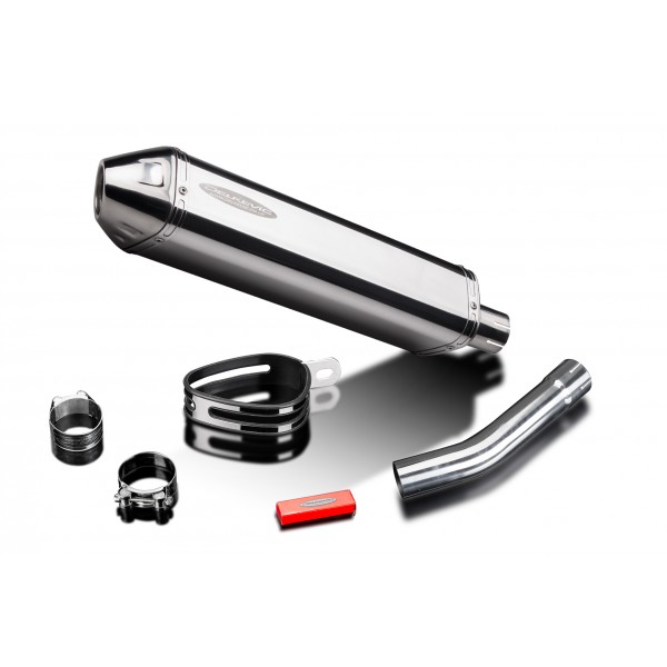• This set includes - Delkevic silencer with a removable baffle, link pipe, strap, and clamps.
