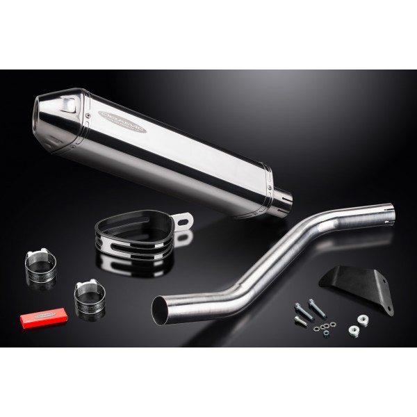 • This set includes - Delkevic silencer with a removable baffle, link pipe, strap, clamps, bracket, and fixings.