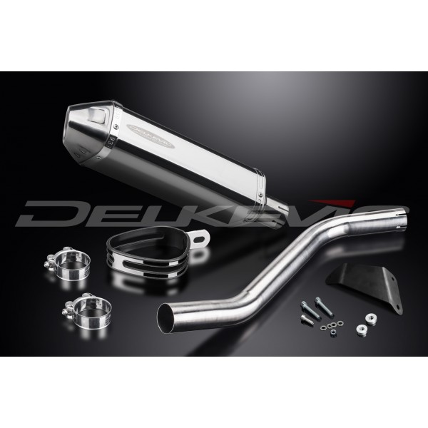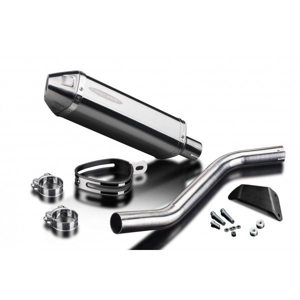 • This set includes - Delkevic silencer with a removable baffle, link pipe, strap, clamps, bracket, and fixings.