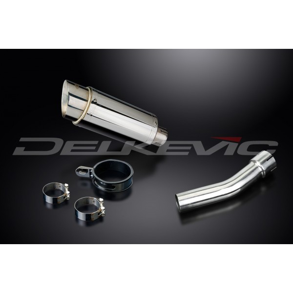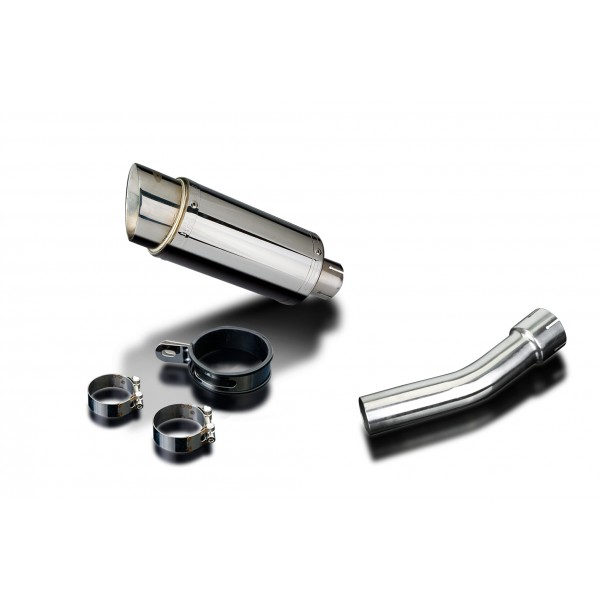 • This set includes - Delkevic silencer with a removable baffle, link pipe, strap, and clamps.