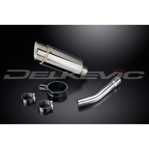 • This set includes - Delkevic silencer with a removable baffle, link pipe, strap, and clamps.
