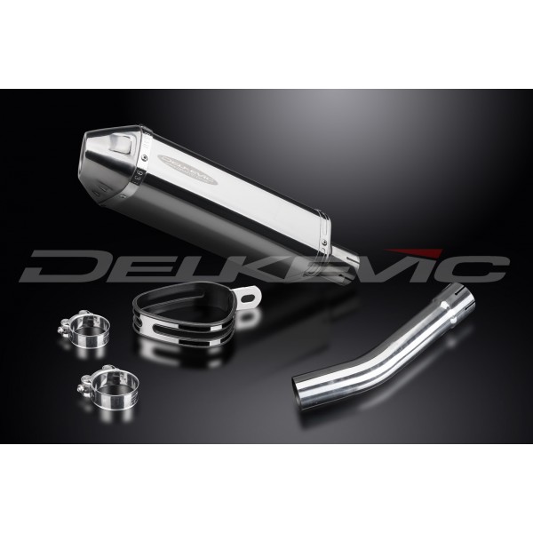 • This set includes - Delkevic silencer with a removable baffle, link pipe, strap, and clamps.