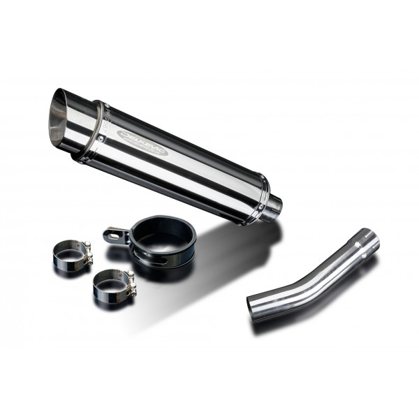 • This set includes - Delkevic silencer with a removable baffle, link pipe, strap, and clamps.