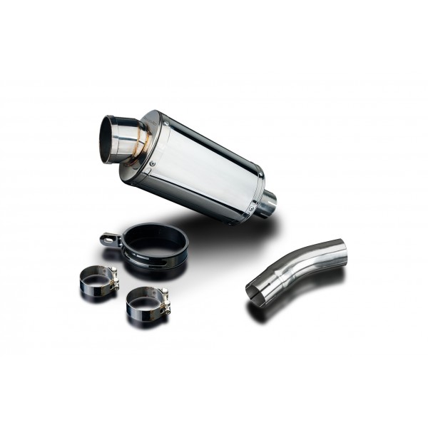 • This set includes - Delkevic silencer with a removable baffle, link pipe, strap, and clamps.