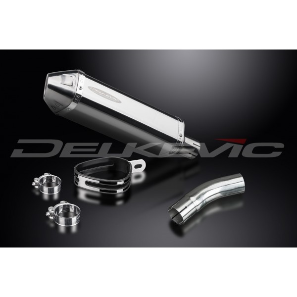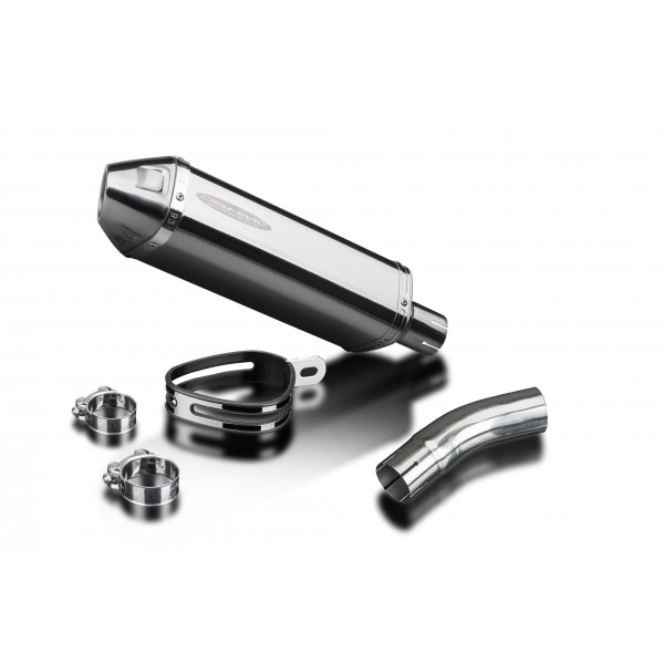 • This set includes - Delkevic silencer with a removable baffle, link pipe, strap, and clamps.