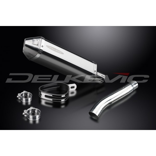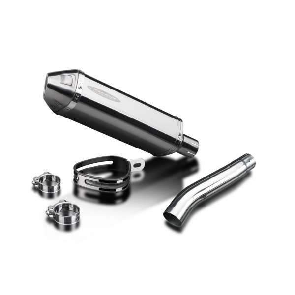 • This set includes - Delkevic silencer with a removable baffle, link pipe, strap, and clamps.