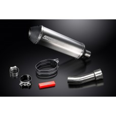 • This set includes - Delkevic silencer with a removable baffle, link pipe, clamps, bracket, and strap.