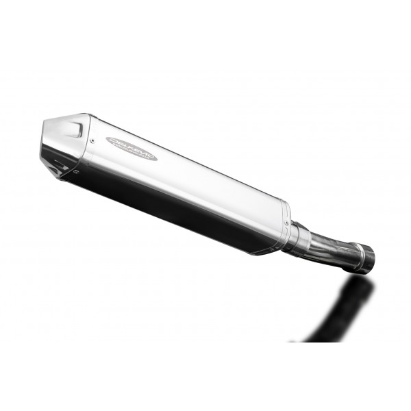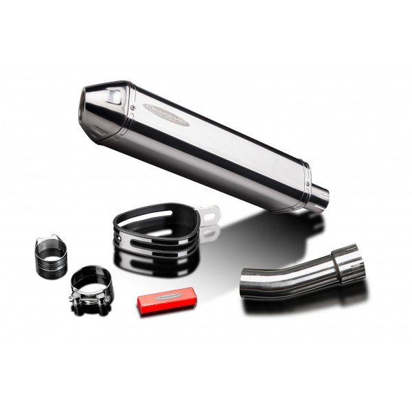 • This set includes - Delkevic silencer with a removable baffle, link pipe, clamps, bracket, and strap.