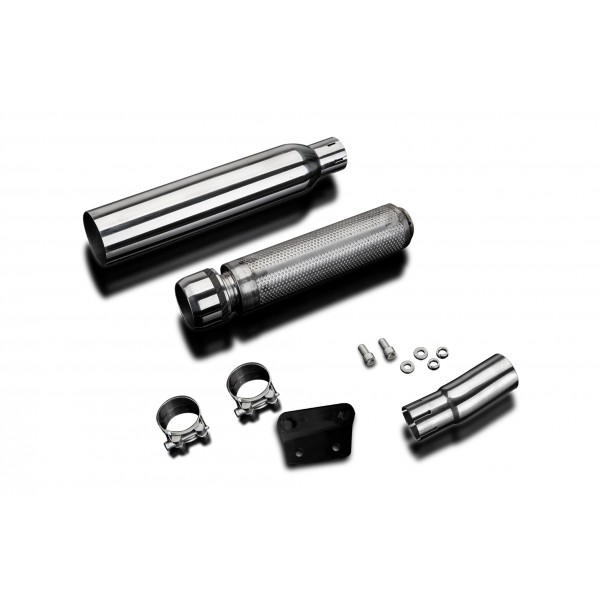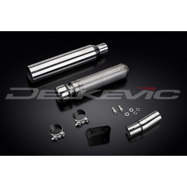 • This set includes - Delkevic silencer with a removable baffle, link pipe, clamps, bracket, and fixings.