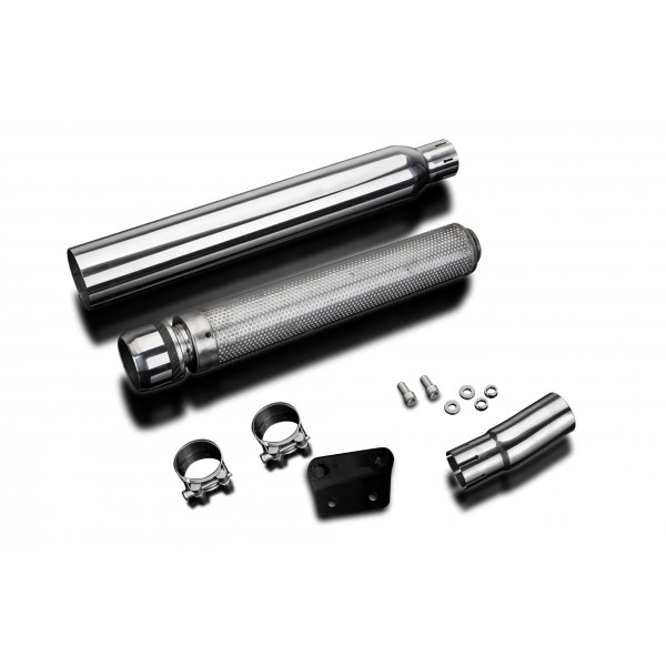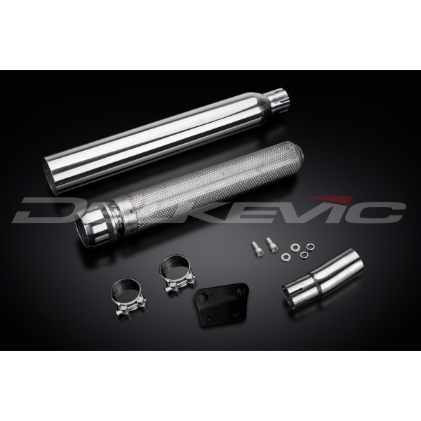 • This set includes - Delkevic silencer with a removable baffle, link pipe, clamps, bracket, and fixings.