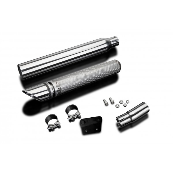 • This set includes - Delkevic silencer with a removable baffle, link pipe, clamps, bracket, and fixings.