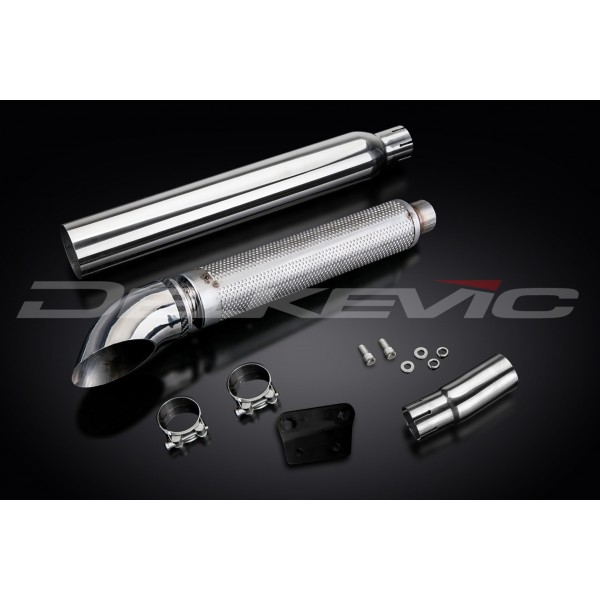 • This set includes - Delkevic silencer with a removable baffle, link pipe, clamps, bracket, and fixings.