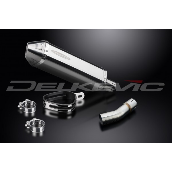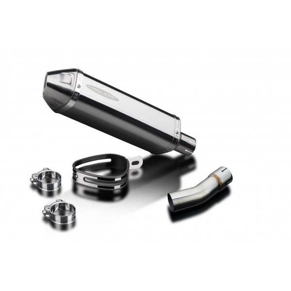 • This set includes - Delkevic silencer with a removable baffle, link pipe, strap, and clamps.