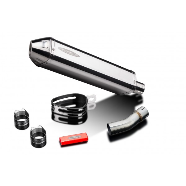 • This set includes - Delkevic silencer with a removable baffle, link pipe, strap, and clamps.