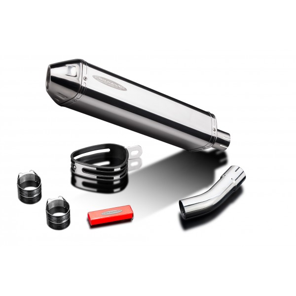 • This set includes - Delkevic silencer with a removable baffle, link pipe, strap, and clamps.