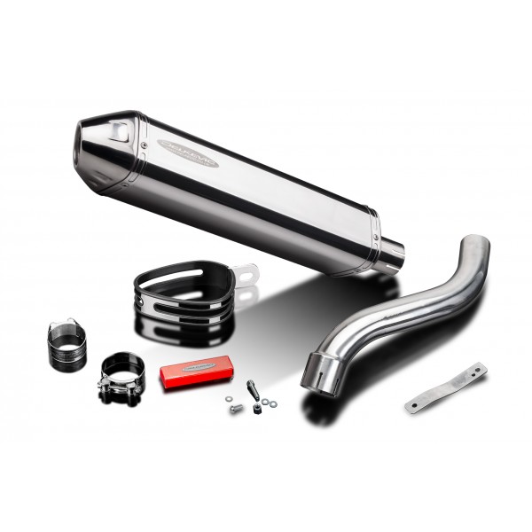 • This set includes - Delkevic silencer with a removable baffle, Hi-Level link pipe, strap, and clamps.