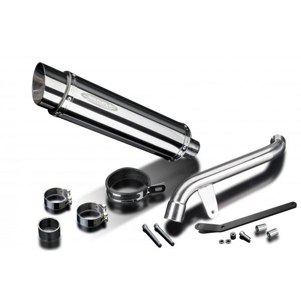 • This set includes - Delkevic silencer with a removable baffle, link pipe, strap, and clamps.