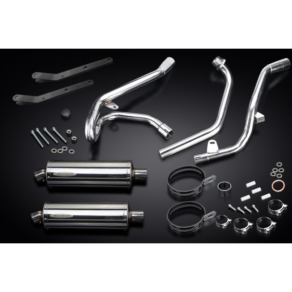 SUZUKI SV650 98-02 FULL 2-2 EXHAUST SYSTEM 350mm STAINLESS OVAL BSAU SILENCERS