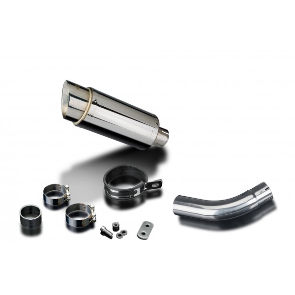 • This set includes - Delkevic silencer with a removable baffle, link pipe, strap, and clamps.