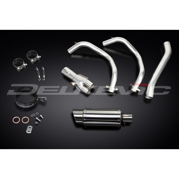 • This set includes - Delkevic down pipes, collector box, link pipe, silencer with a removable baffle, strap, clamps, gaskets, and fixings.