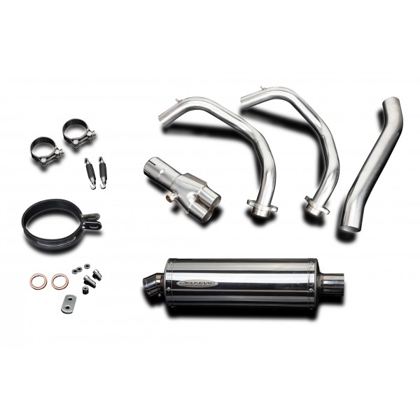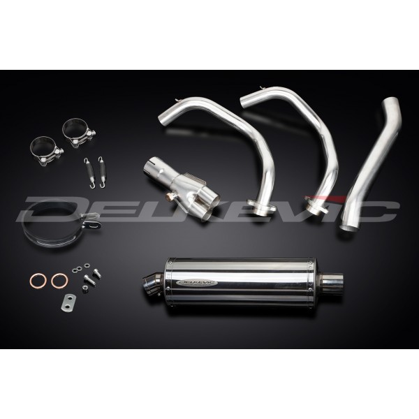 • This set includes - Delkevic down pipes, collector box, link pipe, silencer with a removable baffle, strap, clamps, gaskets, and fixings.