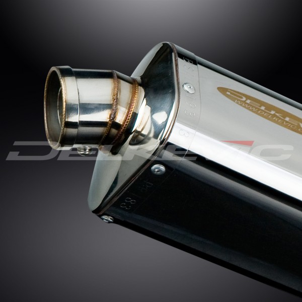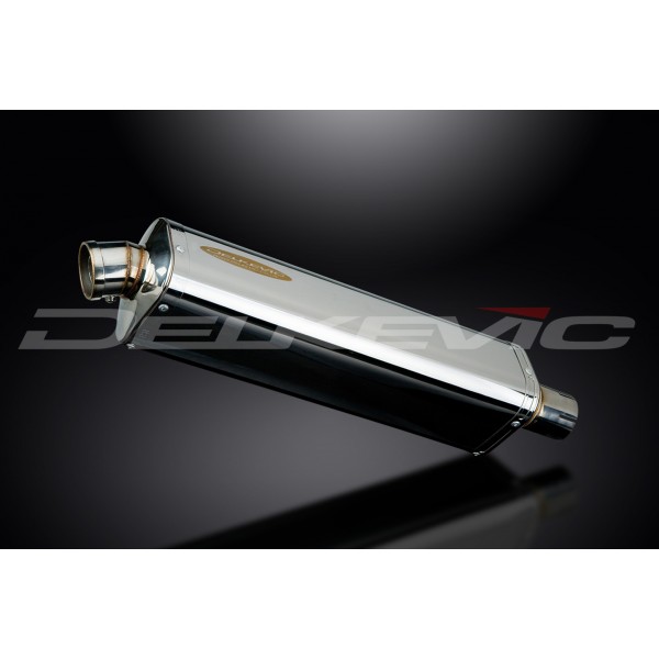 TRI-OVAL 420mm (17 inch) RH STAINLESS STEEL SILENCER INC:CLAMP REMOVABLE BAFFLE & MOUNTING STRAP