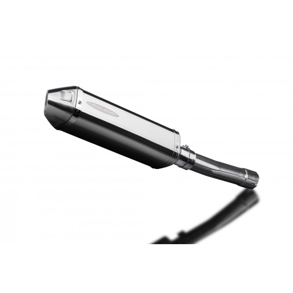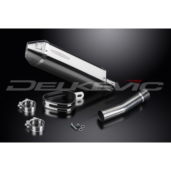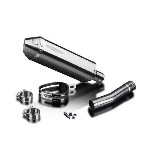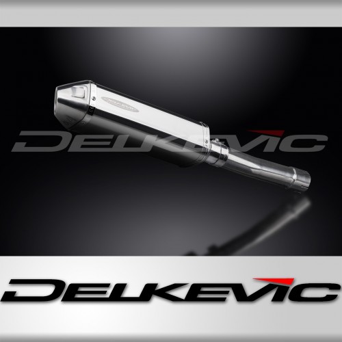 • This set includes - Delkevic silencer with a removable baffle, link pipe, clamps, and strap.