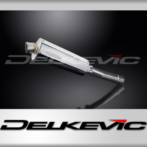 • This set includes - Delkevic silencer with a removable baffle, link pipe, clamps, and strap.