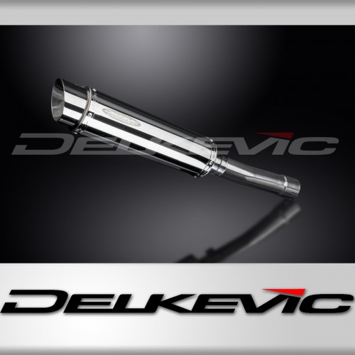 • This set includes - Delkevic silencer with a removable baffle, link pipe, clamps, and strap.