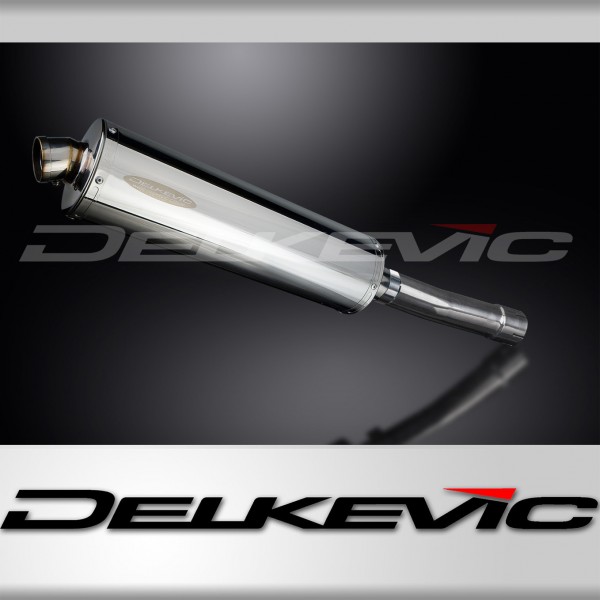 • This set includes - Delkevic silencer with a removable baffle, link pipe, clamps, and strap.