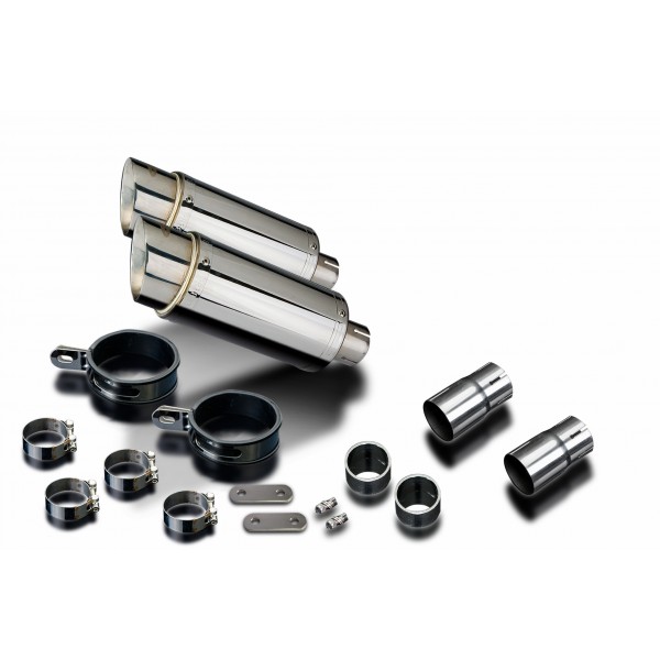 - This set includes - Delkevic silencers with removable baffles, link pipes, straps, screws, washers, nyloc nuts, gaskets, and clamps.