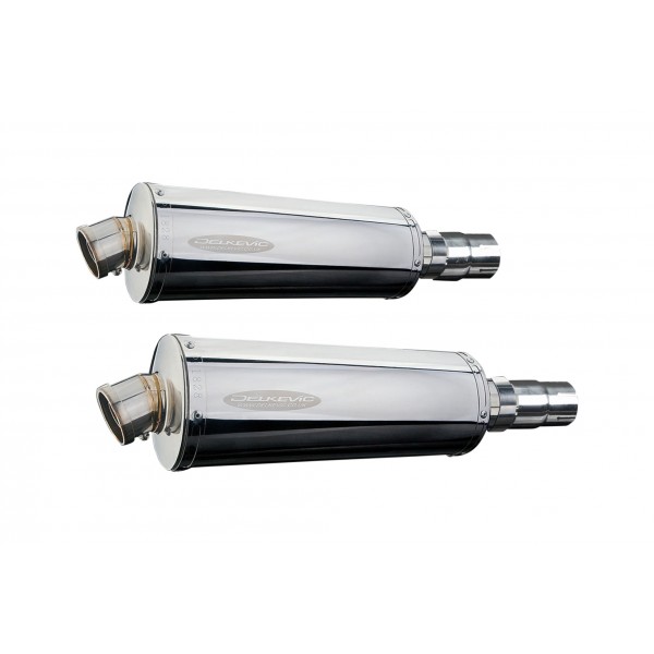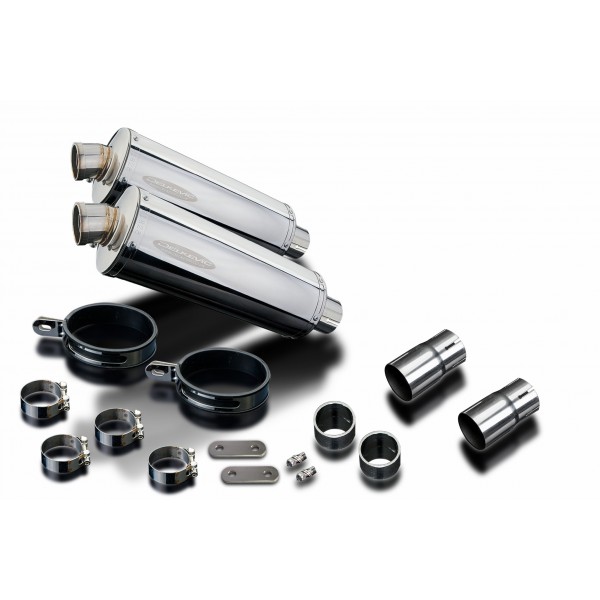 • This set includes - Delkevic silencers with removable baffles, link pipes, straps, screws, washers, nyloc nuts, gaskets, and clamps.