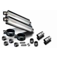 • This set includes - Delkevic silencers with removable baffles, link pipes, straps, screws, washers, nyloc nuts, gaskets, and clamps.