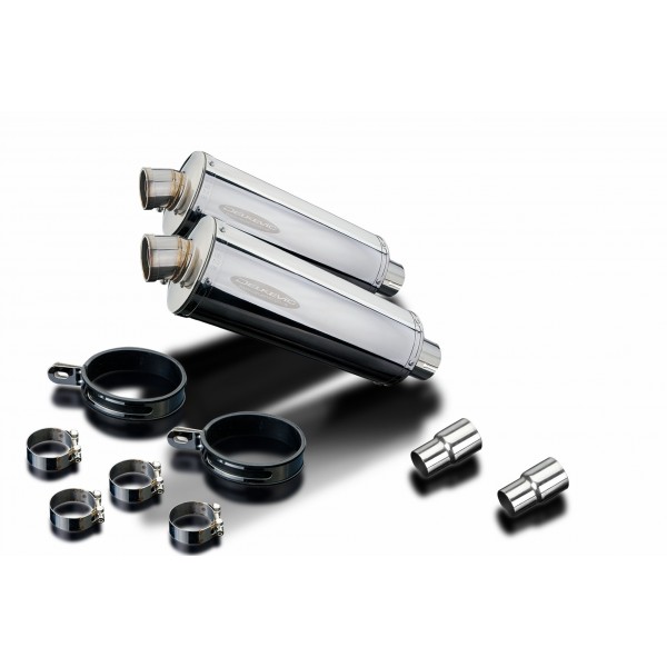 • This set includes - Delkevic silencers with a removable baffle, link pipes, silencer straps, and clamps.