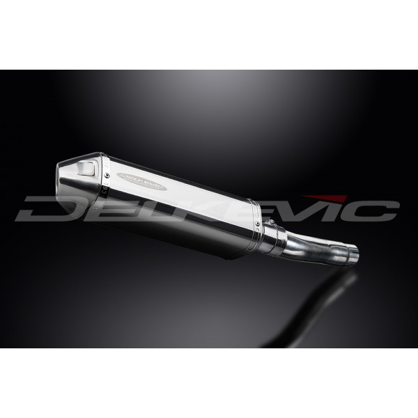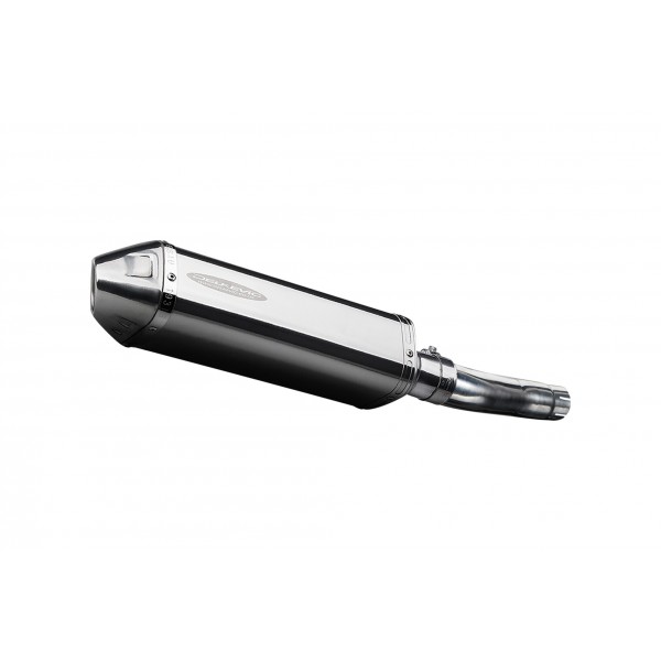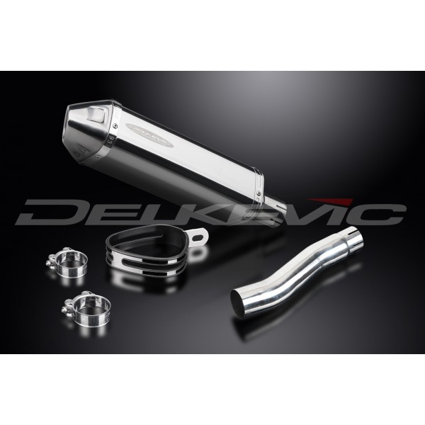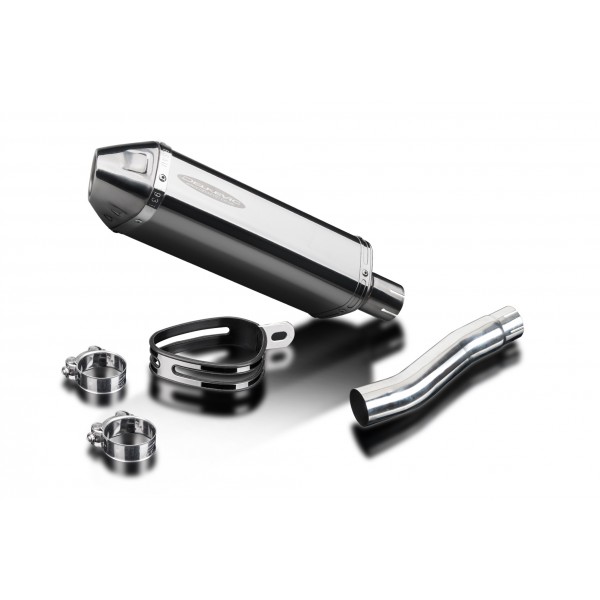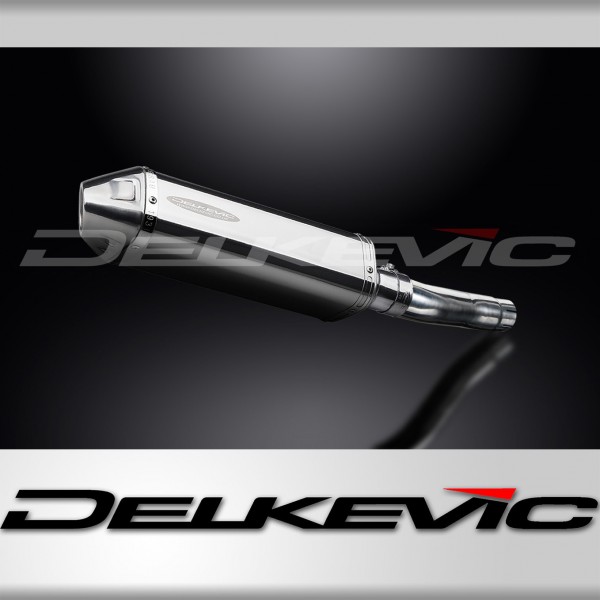 • This set includes - Delkevic silencer with a removable baffle, link pipe, clamp, and strap.