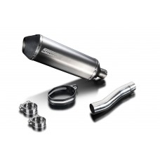 • This set includes - Delkevic silencer with a removable baffle, link pipe, clamp, and strap.