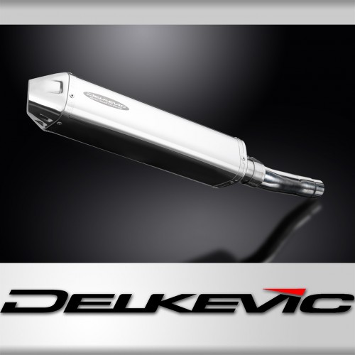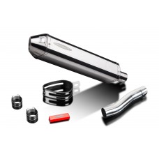 • This set includes - Delkevic silencer with a removable baffle, link pipe, clamp, and strap.