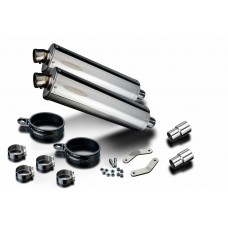 • This set includes - Delkevic silencers with removable baffles, link pipes, straps, clamps, washers, cap screws, nyloc nuts, and brackets.