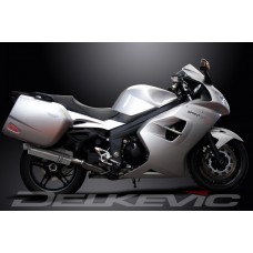 • This set includes - Delkevic silencer with a removable baffle, link pipe, clamps, and strap.