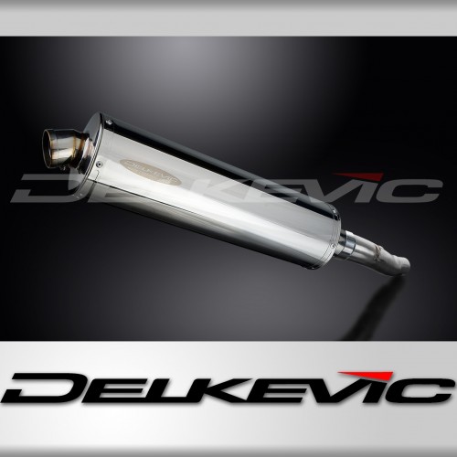 • This set includes - Delkevic silencer with a removable baffle, link pipe, clamps, and strap.