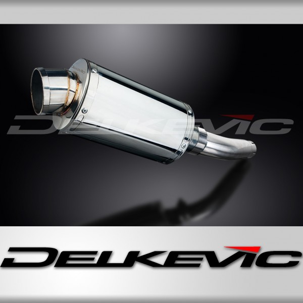• This set includes - Delkevic silencer with a removable baffle, link pipe, clamps, and strap.