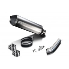• This set includes - Delkevic silencer with a removable baffle, link pipe, clamps, and strap.