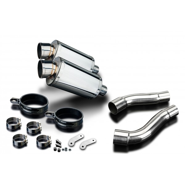 - This set includes - Delkevic silencers with removable baffles, link pipes, straps, clamps, brackets, and fixings.
