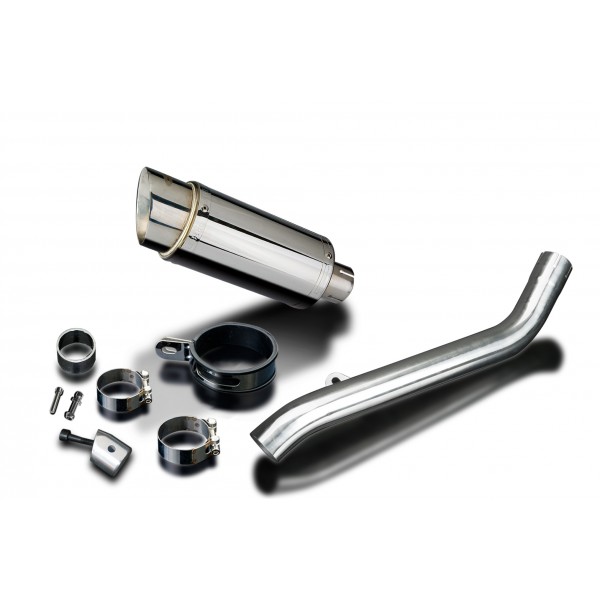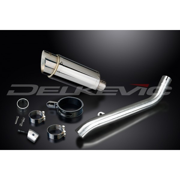 • This set includes - Delkevic silencer with a removable baffle, link pipe, strap, and clamps.