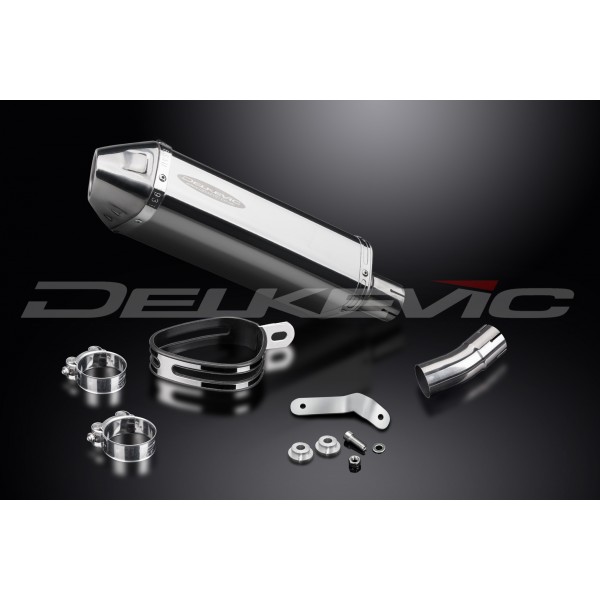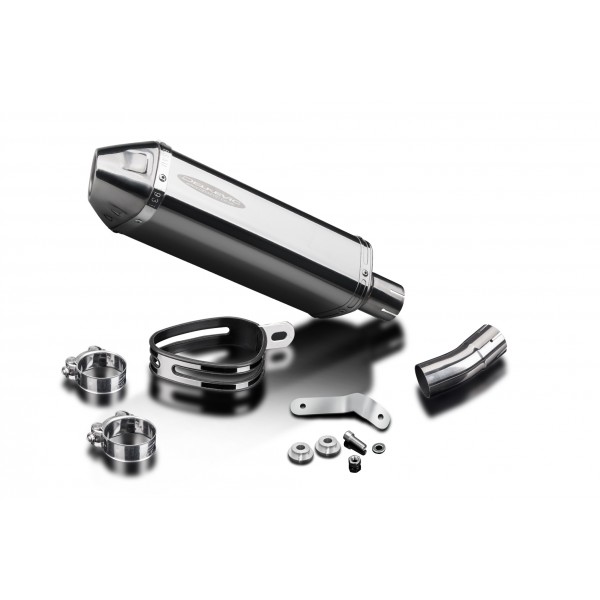 • This set includes - Delkevic silencer with a removable baffle, link pipe, strap, and clamps.