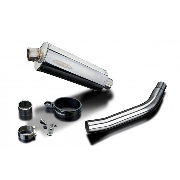 • This set includes - Delkevic silencer with a removable baffle, link pipe, strap, clamps, gasket, nyloc nut, cap screw, washers, and bracket.