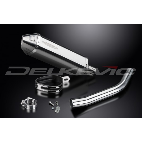 • This set includes - Delkevic silencer with a removable baffle, link pipe, strap, clamps, gasket, nyloc nut, cap screw, washers, and bracket.