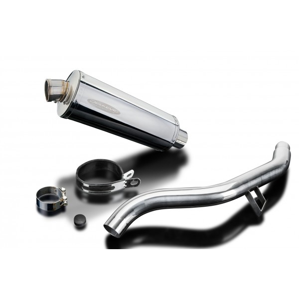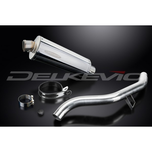 • This set includes - Delkevic silencer with a removable baffle, link pipe, strap, and clamp.