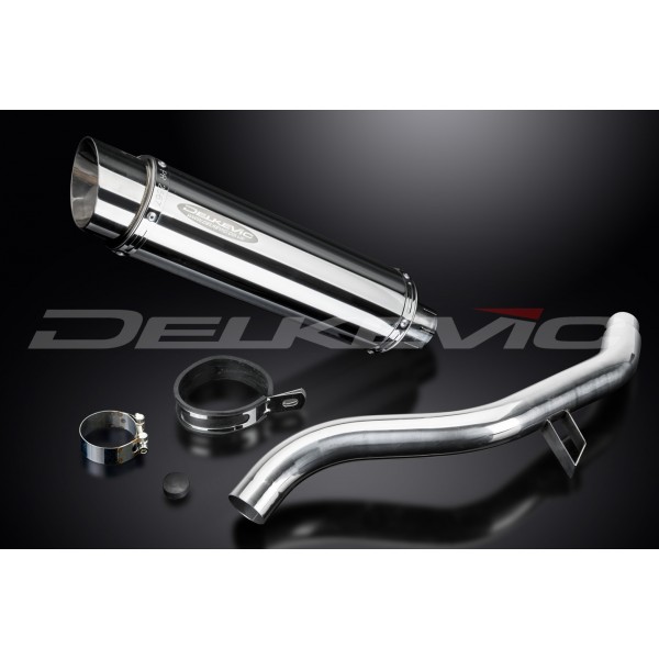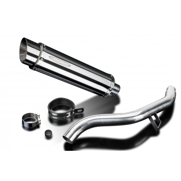 • This set includes - Delkevic silencer with a removable baffle, link pipe, strap, and clamp.