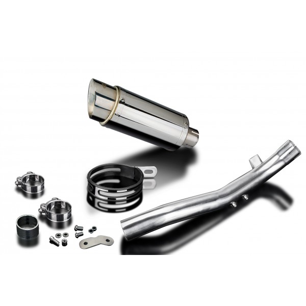 - This set includes - Delkevic silencer with a removable baffle, link pipe, silencer strap, bracket, cap screw, button head screws, washers, nyloc nut, and clamps.